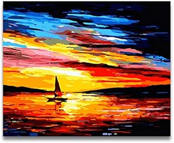 Ycsmyxgs Diy Farbung Durch Zahlen Abstrakte Meerblick Sonnenaufgang Serie Bilder Gemalde Von Zahlen Meer Mit Farben Zeichnen Gerahmt 40x50 Cm Amazon De Kuche Haushalt