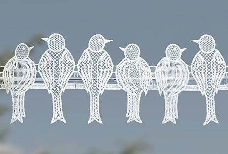Scheibengardine Fensterdeko Spatzen Auf Der Stange Aus Spitze Hohe X Breite Ca 12 X 65 Cm Amazon De Kuche Haushalt