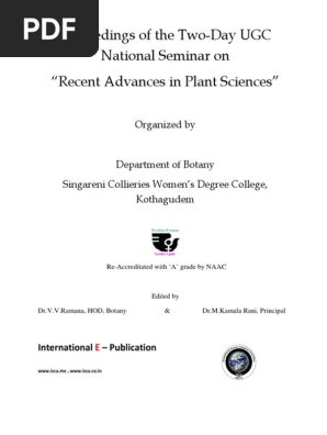 Proceedings Of The Two Day Ugc National Seminar On Recent Advances In Plant Sciences Pdf Free Download